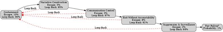 ● Containment: Escape probability ~5%; Loop-back ~90% (back to Containment if deemed “escalating” or “noncompliant”).
